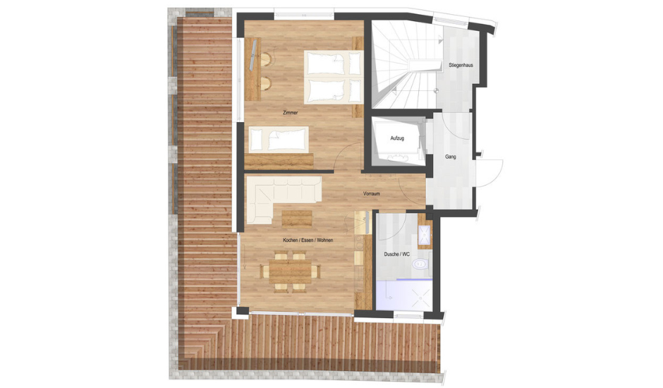 zudem bietet die Wohnung direkten Zugang zur großzügigen Terrasse.