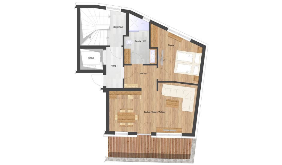 ideal für Paare oder kleine Familien. Die Wohnung ist barrierefrei zugänglich,